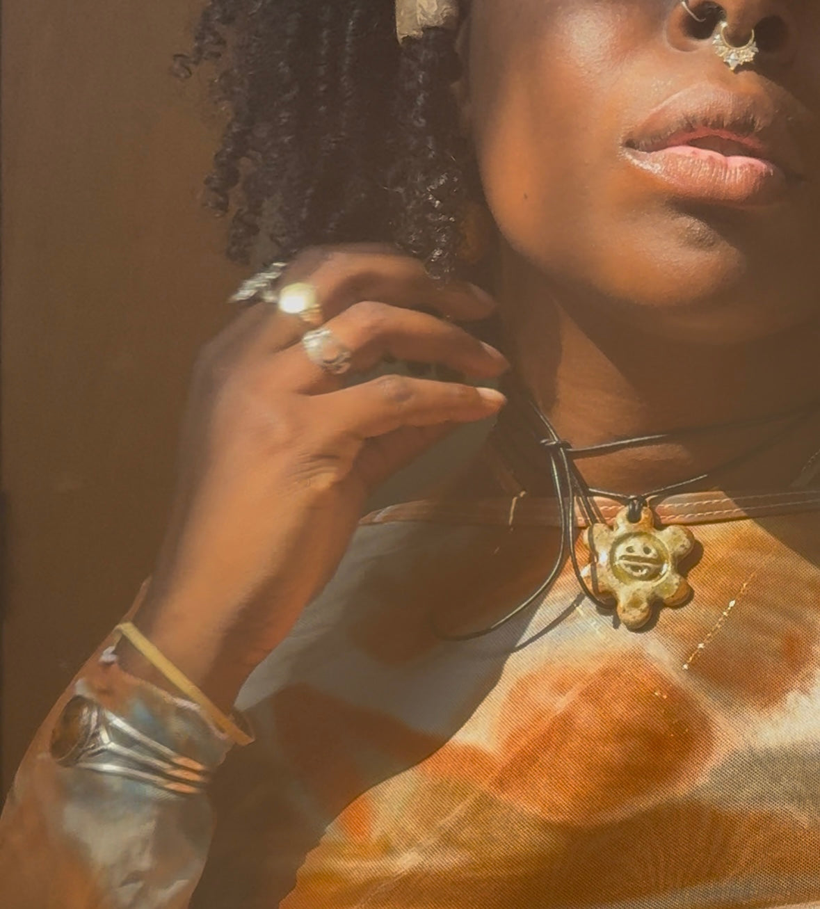 Each pendant is carefully sculpted from natural clay and fired with a glaze made from real wood ashes, creating one-of-a-kind textures and earthy tones that connect you to the land and the fire that shaped it. The sun motif represents life force, clarity, and ancestral connection—a wearable amulet for strength and renewal.
